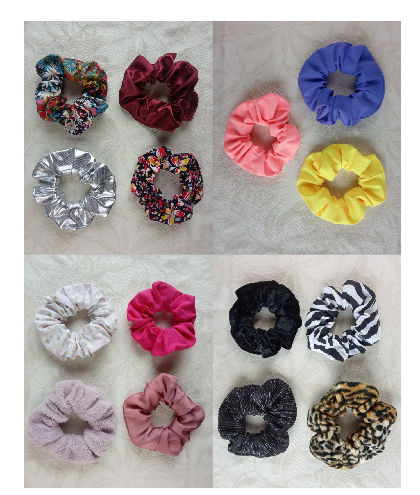 grand choix de chouchous faits main, bonne qualité, diamètre 14 cm Disponible Taille 14 cm Prix 4.00€